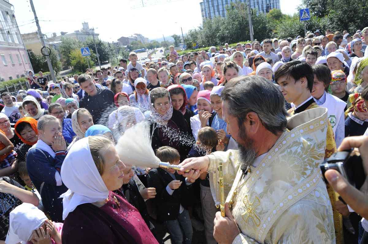 Крестный ход прошёл по центральным улица Улан-Удэ, большинство его участников – дети и студенты, отмечается в сообщении.