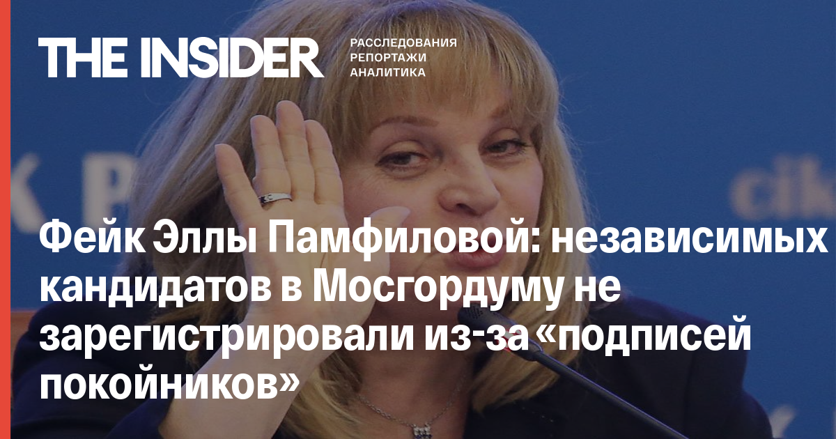 Фейк Эллы Памфиловой: независимых кандидатов в Мосгордуму не зарегистрировали из-за «подписей покойников»
