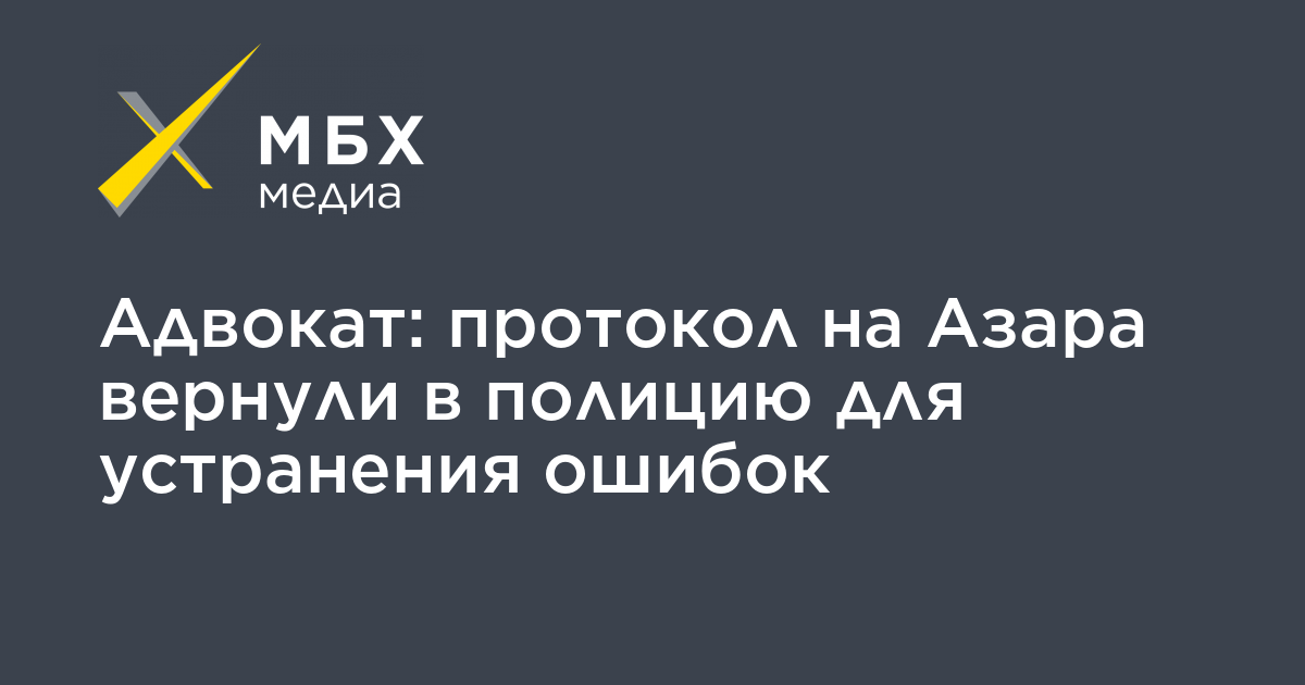 Составленный на Илью Азара протокол о повторном нарушении правил проведения митинга (часть 8 статьи 20.2) вернули в полицию для устранения ошибок. Об этом «МБХ медиа» рассказал адвокат Михаил Бирюков.