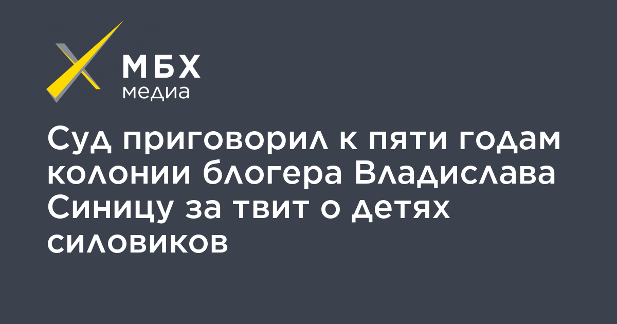 Пресненский районный суд Москвы приговорил к пяти годам колонии блогера из Подмосковья Владислава Синицу, которого обвинили в возбуждении ненависти либо вражды (пункт «а» части 2 статьи 282 УК) за твит о насилии над детьми силовиков. Об этом сообщает корреспондент «МБХ медиа».