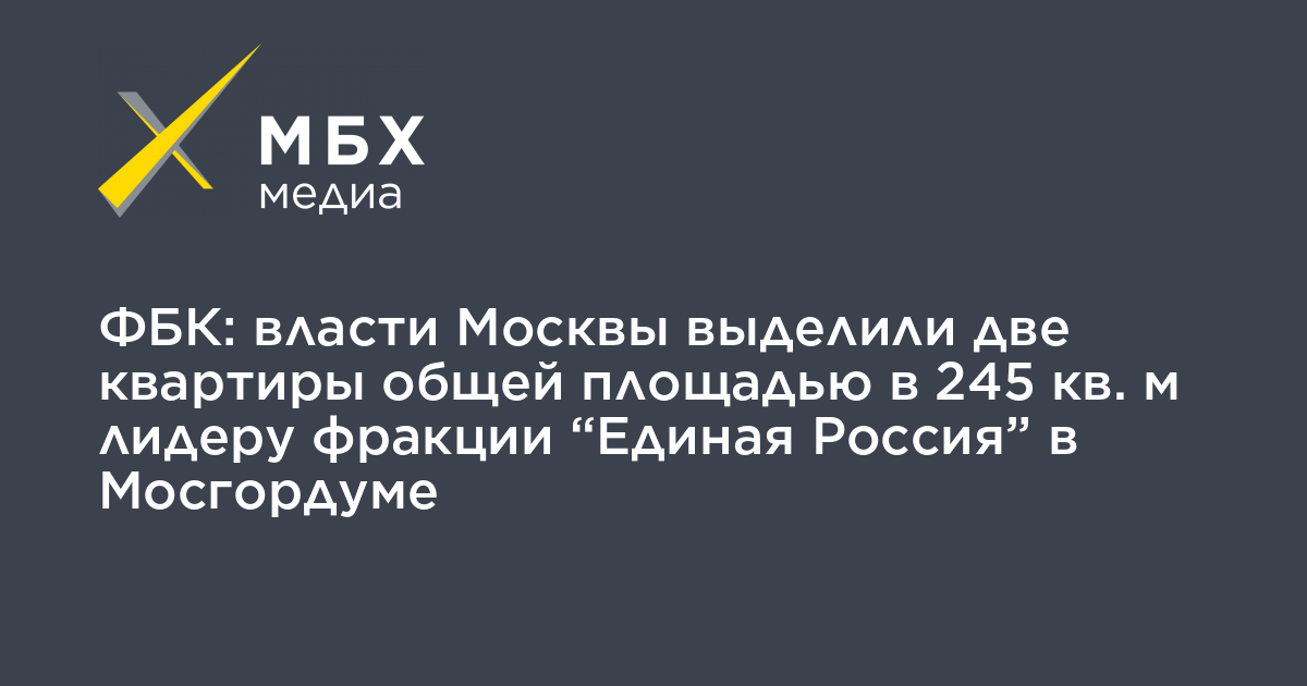 ФБК: власти Москвы выделили две квартиры общей площадью в 245 кв. м лидеру фракции «Единая Россия» в Мосгордуме