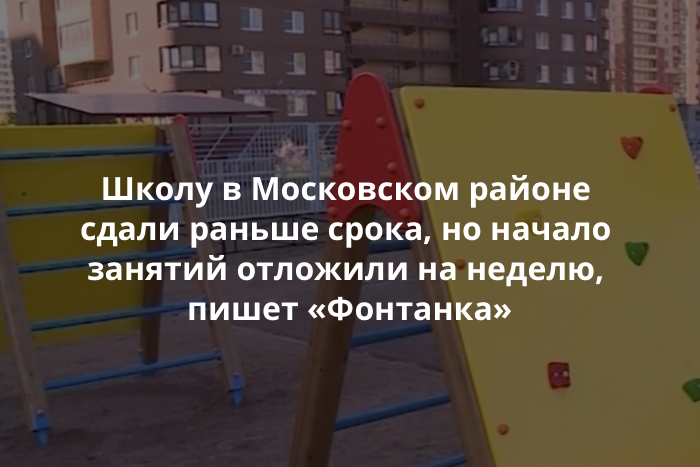 Занятия в новой школе Московского района отложили на неделю, пишет «Фонтанка»