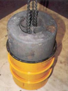 Левее, в глубине палубы понтона, можно заметить также лежащий на боку цилиндрический объект с желтым основанием и серо-коричневым верхом. Это может быть контейнер для транспортировки высокоактивных ядерных отходов – так называемый ТУК (транспортно-упаковочного контейнер). Похожий ТУК можно найти в презентации (.pdf) немецкой компании Siempelkamp для выставки "Атомэкспо-2014": "особый контейнер" выглядит как бочка желтого цвета, в которой размещен чугунный вкладыш биозащиты с отверстиями для ядерных материалов. При аварии этот вкладыш мог наполовину выехать из бочки, поэтому на фотографии из Нёноксы ТУК кажется состоящим из двух частей.