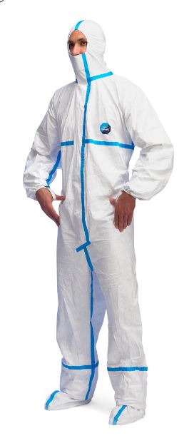 На этом фото – предположительно, выброшенный специальный защитный костюм. Обратите внимание на голубую полосу: такие же есть, к примеру, на одном из комбинезонов химической защиты, представленном на российском рынке. Если верить описанию, комбинезон предназначен, в числе прочего, для "защиты от проникновения радиоактивных частиц".