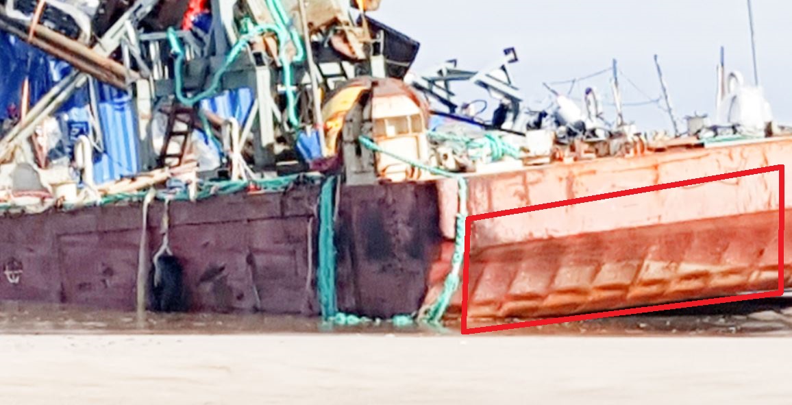 Характер повреждений на этих и более ранних фотографиях соотносится с версией о том, что взрыв произошел не на самой платформе, а под водой или прямо над поверхностью. Об этом можно судить по тому, что на более ранних снимках, где поврежденный понтон находился на отдалении от берега, его задняя часть выглядит подтопленной – вероятно, были смяты или пробиты некоторые секции поплавков. Об этом же говорят и вмятины на торцевой части поврежденной платформы. В то же время основные повреждения на палубе вызваны падением крана, а на контейнере с дизель-генератором нет очевидных следов воздействия пламени.