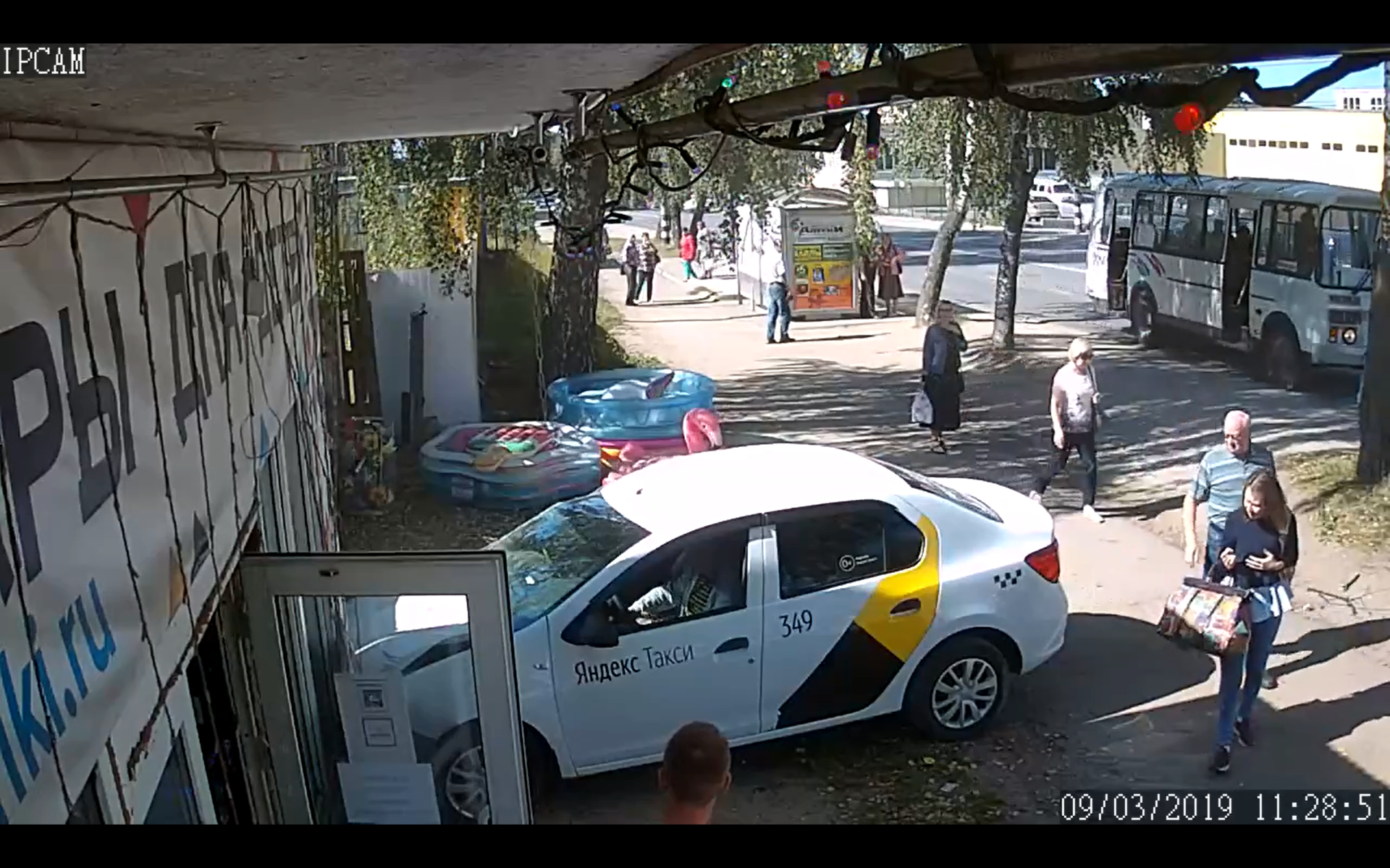 Автомобиль Яндекс-Такси «Рено-Логан» съехал с дороги на тротуар. Там, едва не сбив девушку, он протаранил торговый павильон. После этого воитель как ни в чем не бывало скрылся с места аварии. Очевидцы говорят, что он был пьян.
