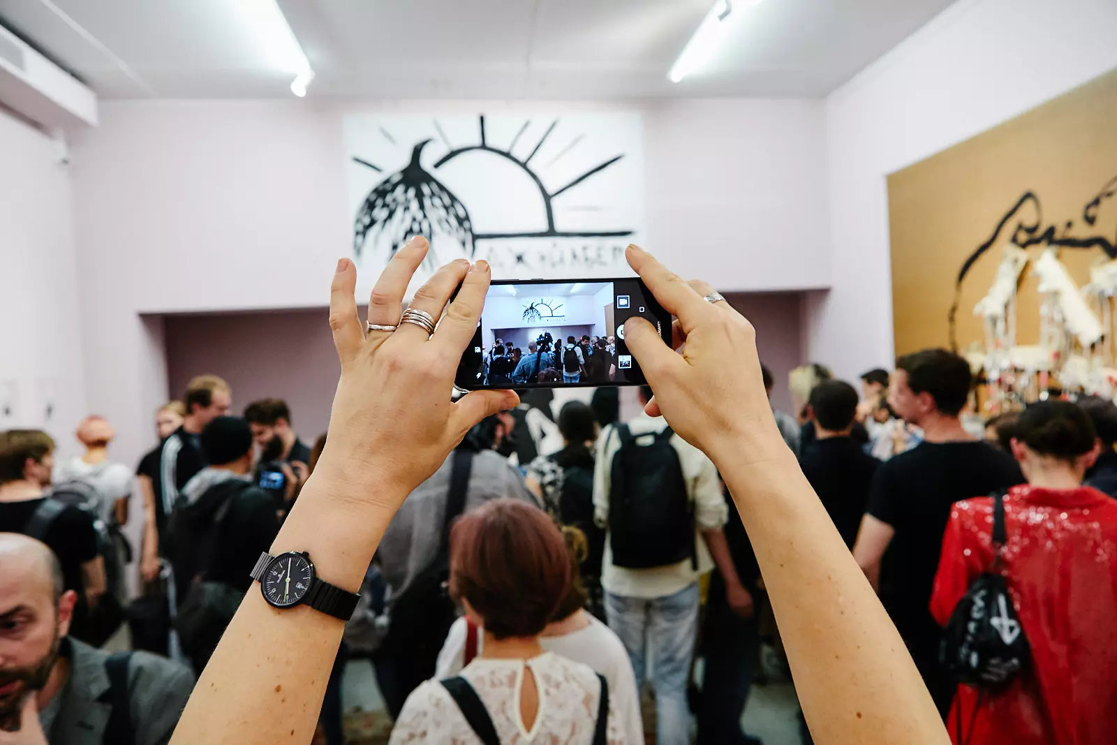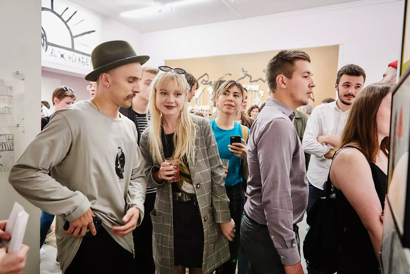 Аудитория совершенно разная. Цветные прически, татуировки и футболки с забавными надписями у каждого третьего. Как сказала журналистка «Медиазоны» Настя Ясеницкая, здесь очень модно и душно. Некоторые пришли на открытие с детьми. Одна женщина привела двух дочерей, как они мне сказали, выставка им понравилась. В отдельном крыле, где проходит другая выставка, ЛГБТ-активистка Дана Фридер разделась и фотографировалась с людьми, негативной реакции на ее наготу я не заметила, но через минут 20 она оделась, сказав: «Мало ли, сколько здесь гомофобов».
