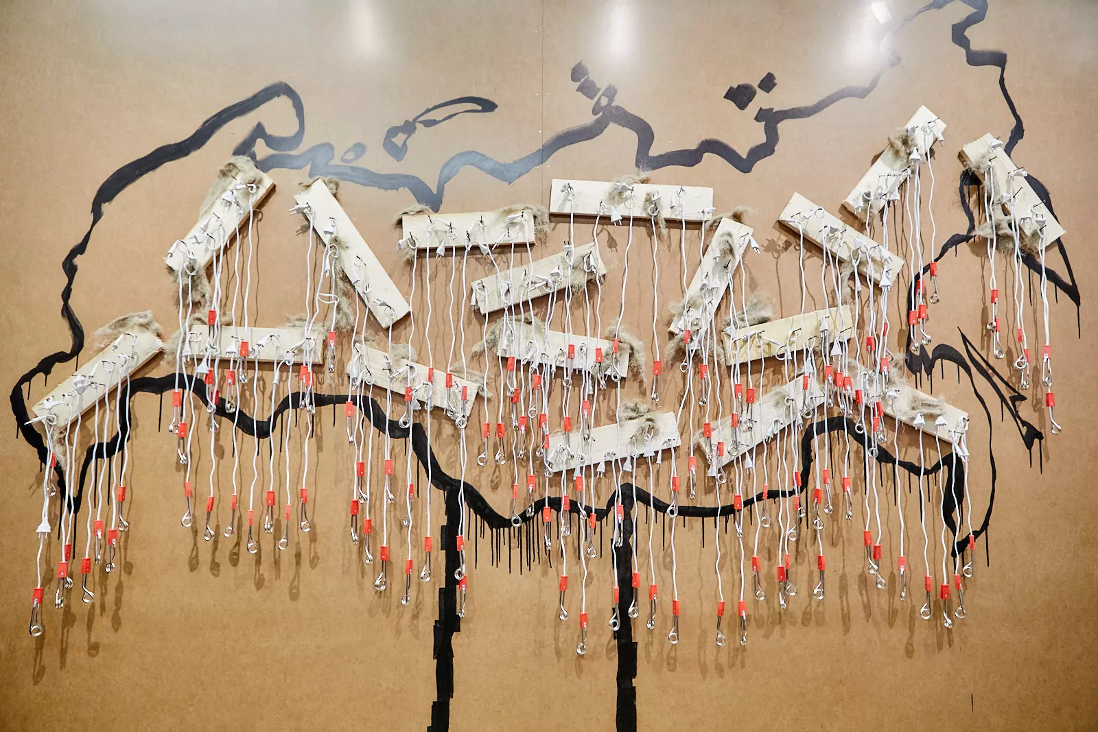 На фасаде здания в Хлыновском переулке небо держат атланты. В правом крыле музея АРТ4 еще до начала мероприятия уже много людей. У входа тебя встречает двуглавый орел из колючей проволоки на фоне листов бумаги с текстом, внизу подпись: «Матушка». В создании экспоната Олег Навальный использовал два сверла, найденные в офисе ФБК после обыска 27 июля 2019 года, которые «вероятно, использовались для установки прослушивающих устройств». На листах бумаги — копии материалов обыска: «В кабинете № 11 обнаружено и изъято: 66. Съемный жесткий диск WD S/N WX31EA1MF219 с проводом питания; 67. Съемный жесткий диск марки Transcend SN: D831870349» и так далее. Возле экспоната фотографируются Надежда Толокно, Любовь Соболь.