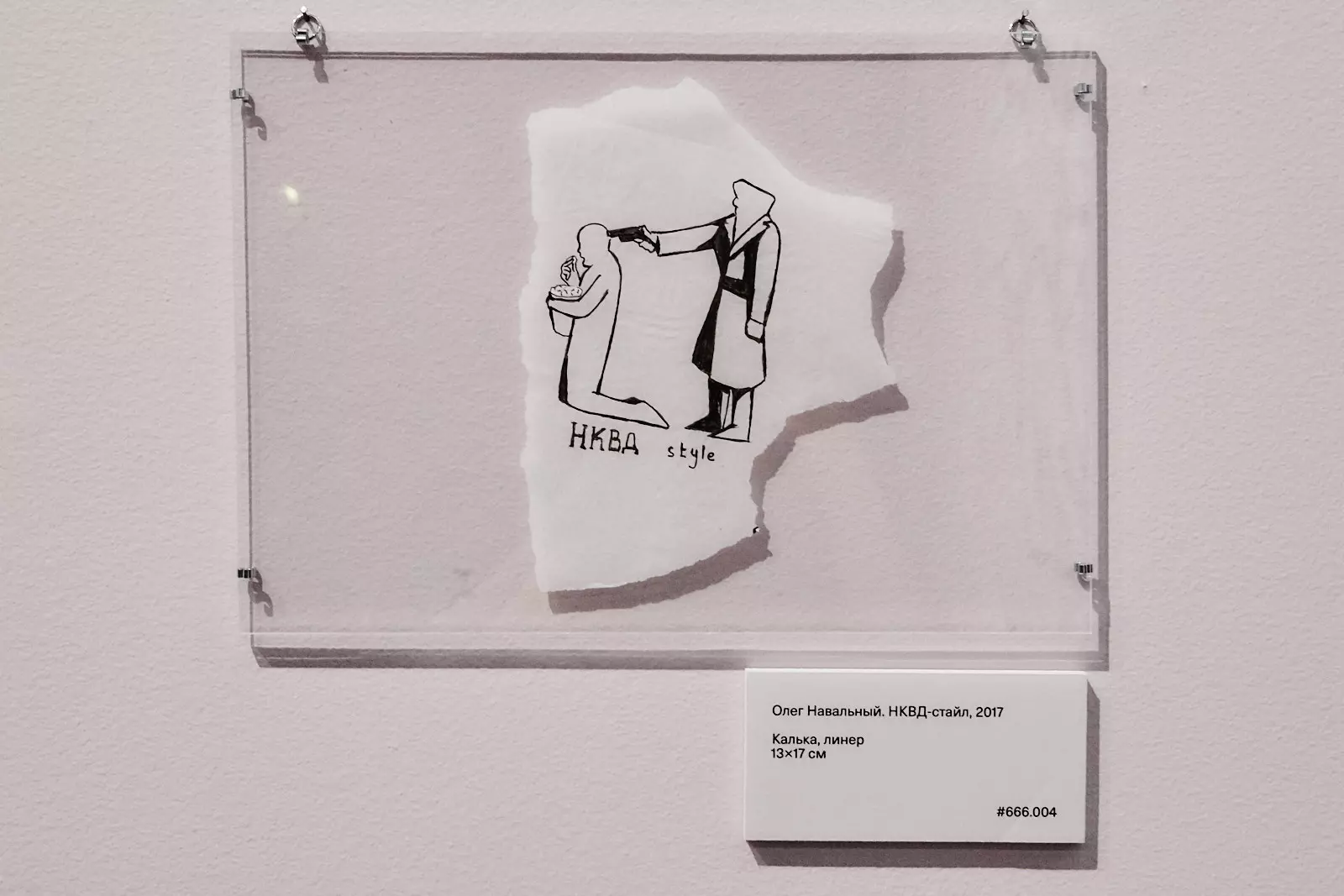 «Это рисунки, которые я нарисовал в тюрьме. По окончанию выставки будет аукцион, мы это все продадим и направим все деньги ФБК на борьбу с режимом, будем монетизировать мои тюремные страдания, — объяснил мне Навальный. — Это не завершение моей тюремной истории, один из способов ее завершить — посадить негодяев, которые меня посадили. Мы начали планировать выставку за пару-тройку месяцев, сейчас она, само собой, связана и с «московским делом», но задумывали ее до московских протестов, потому что тема протестов начинается тогда, когда сажают невиновных людей, и может закончиться, только когда всех невиновных отпустят».