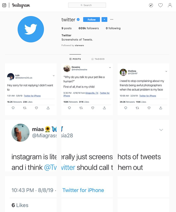 Twitter завел аккаунт в инстаграме. Цель у него одна — троллить конкурента