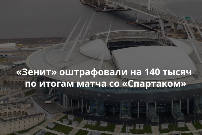 «Зенит» оштрафовали на 140 тысяч по итогам матча со «Спартаком»