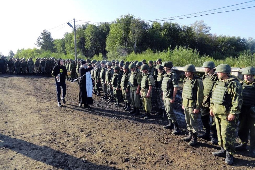 «Иерей Алексий совершил молебен, объехал в бронемашине территорию складов с Порт-Артурской иконой Божией Матери, окропил командный состав, военнослужащих и технику святой водой и раздал всему личному составу иконки Пресвятой Богородицы, — рассказали в соборе. — После этого иерей Алексий и прихожане ачинских храмов совершили автомобильный крестный ход вокруг города, помолились у Поклонных крестов».