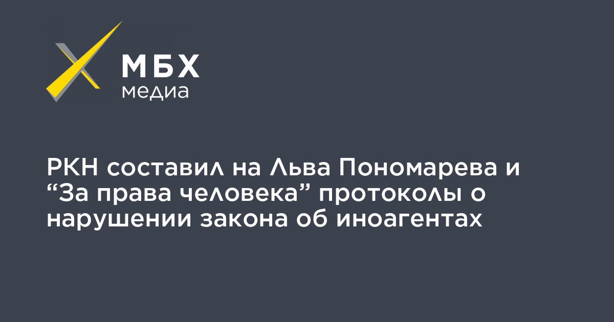 Роскомнадзор составил на движение «За права человека» и его главу, правозащитника Льва Пономарева протоколы о нарушении закона об иностранных агентах (19.34 КоАП). Об этом сообщила «МБХ медиа» руководитель юридического отдела движения «За права человека» Ольга Жукова.