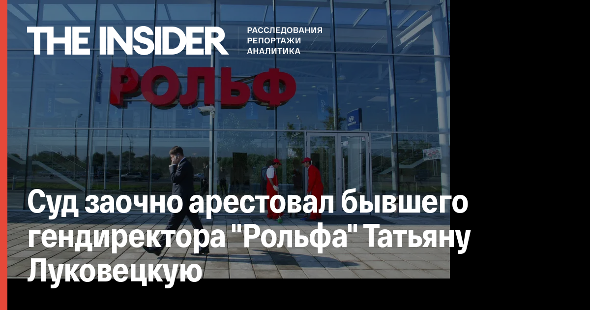 Басманный суд Москвы заочно арестовал бывшего генерального директора автодилера «Рольф» Татьяны Луковецкой, сообщает «Интерфакс». Арест назначен на два месяца с момента экстрадиции Луковецкой в Россию либо задержания ее на территории РФ.