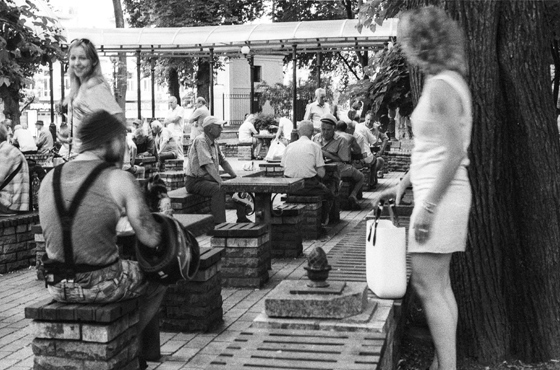 «Наверняка она сражается на стороне гиацинтов»,— заявил он вдруг и рассмеялся. Мы замолчали, и он смотрел на меня, ожидая, что я оценю по достоинству его чувство юмора. «Время идет, я умнею, начинаю понимать, что к чему и куда мы движемся, — добавил он. — Я уже не тот, что прежде. Меня за один раз не обдуришь! Киев научил меня уму-разуму. Это не наш наивный Донецк. Но чувство юмора мне не изменяет никогда! За ним мне в карман лезть не надо». Он опять рассмеялся и победной походкой отправился по своим дальнейшим делам.