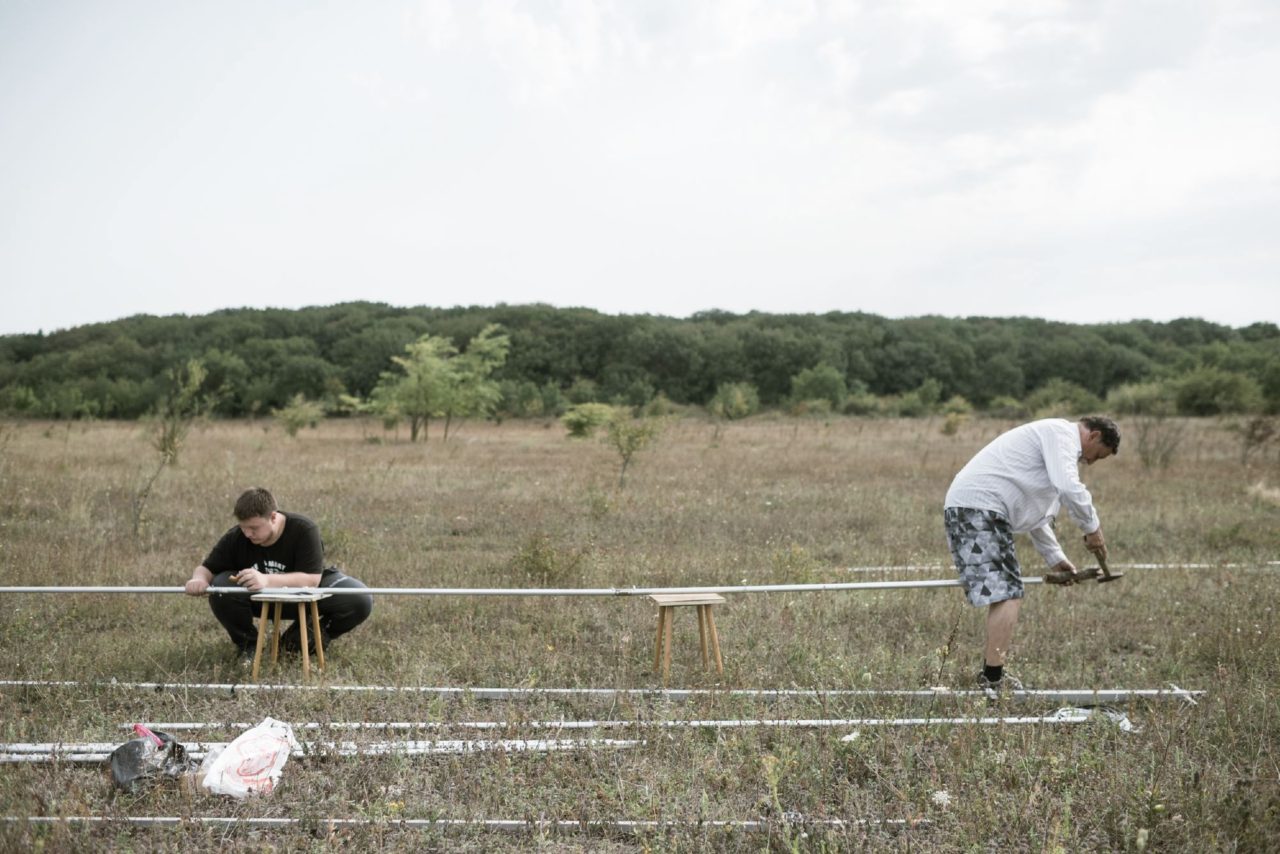 Владимир Николаевич и его ученик Никита собирают антенну «волновой канал» на 40 метровФото: Алина Десятниченко для ТД