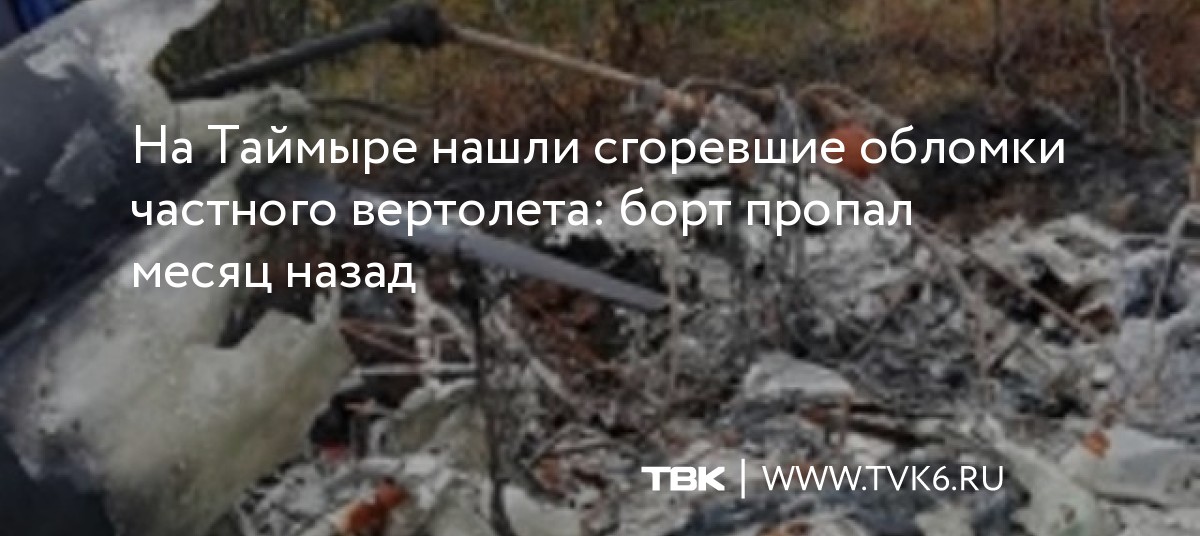 На Таймыре нашли сгоревшие обломки частного вертолета: борт пропал месяц назад