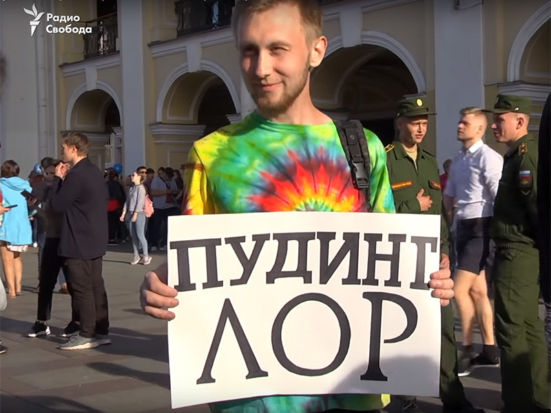 "Пудинг Лор" - да, так можно, признал районный суд Петербурга и отпустил активиста, устроившего пикет с таким плакатом