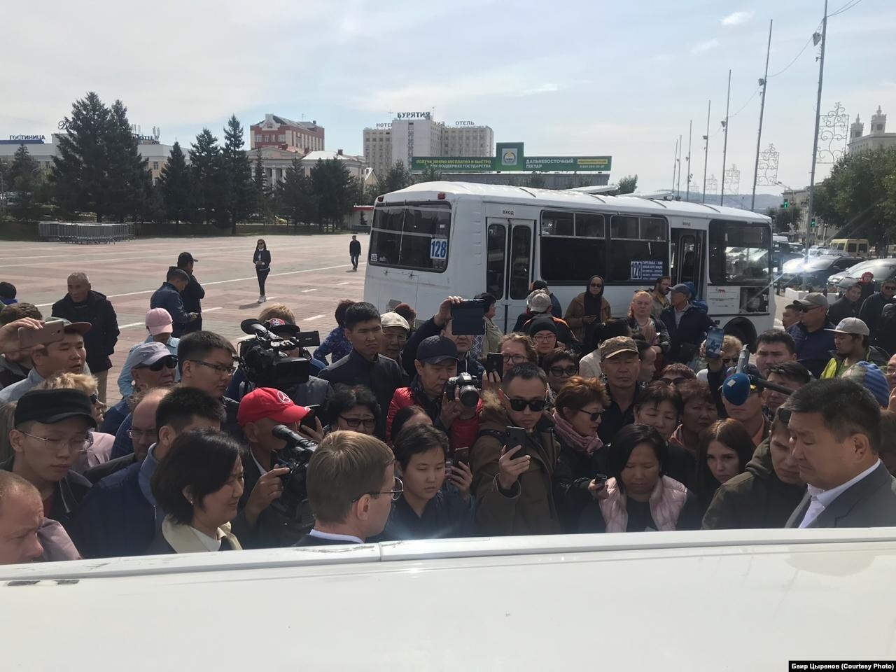 К вечеру понедельника в центре Улан-Удэ собралось около 200 человек. Стихийное собрание началось с того, что на площадь Советов пришли недовольные итогами выборов мэра Улан-Удэ, на которых победил и. о. главы администрации города Игорь Шутенков. В этот момент он как раз общался на площади с журналистами.