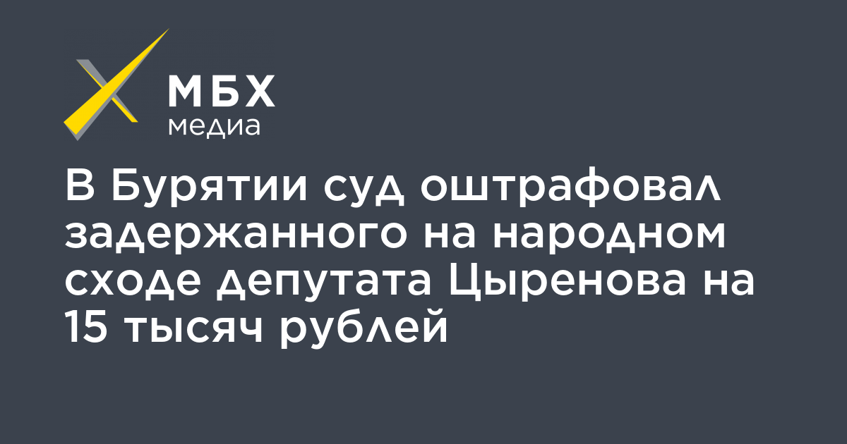 В Бурятии суд назначил штраф в 15 тысяч рублей депутату Народного Хурала Баиру Цыренову, задержанному накануне на стихийной акции протеста в Улан-Удэ, об этом «МБХ медиа» сообщил его адвокат Сергей Федоров.