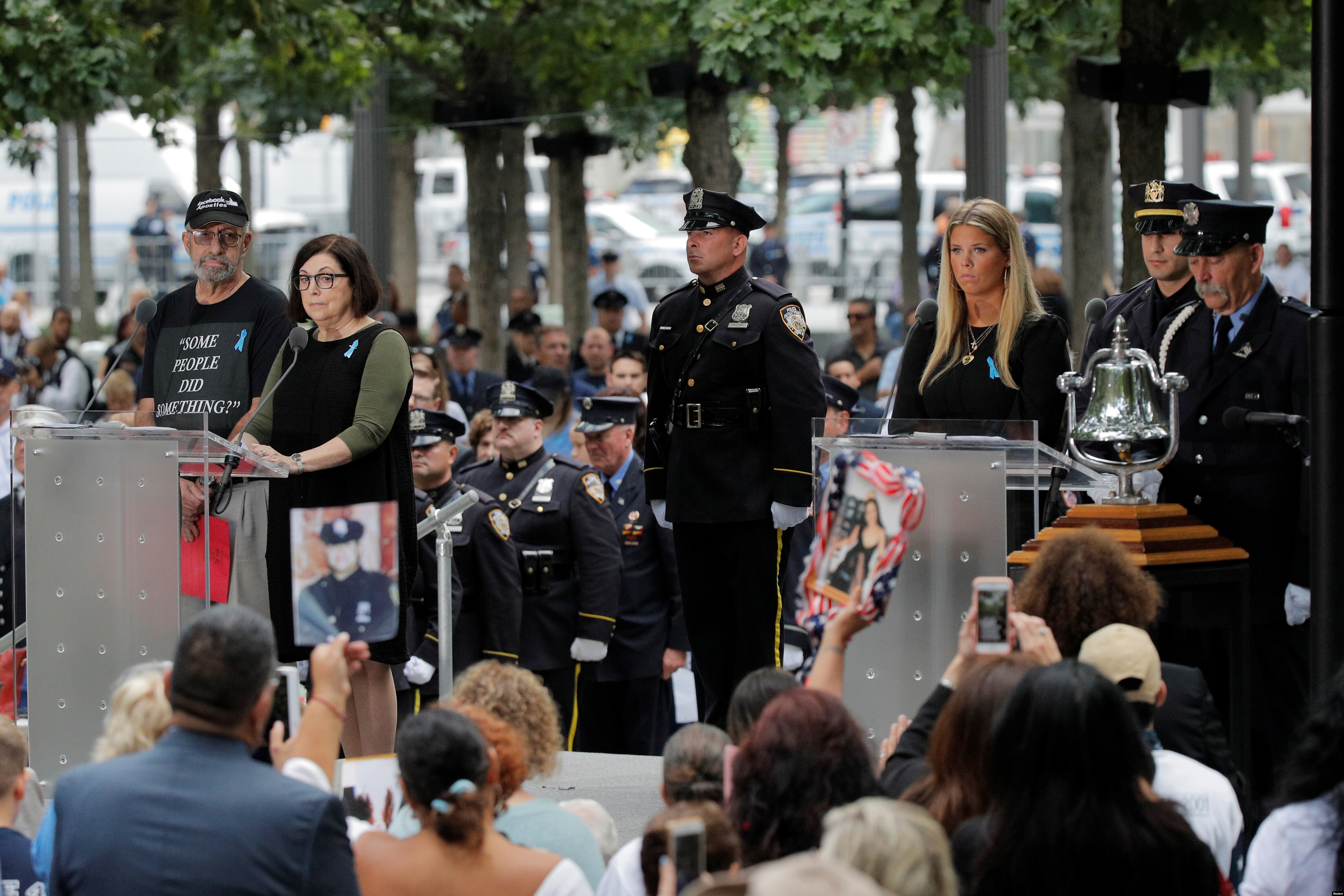 Сотни выживших и родственники погибших собрались в Нью-Йорке на месте, где стояли башни-близнецы Всемирного торгового центра. В память о погибших ровно в 8 часов 46 минут, когда в северную башню комплекса врезался первый угнанный террористами самолёт, объявили минуту молчания.