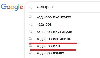 Помимо "дона", в пятерку самых популярных запросов про Кадырова в Google входит тема извинений.