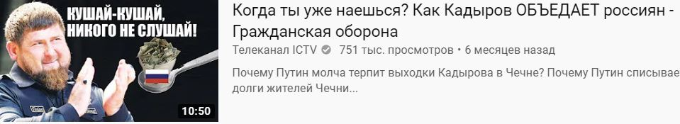 К примеру, так назвали русский перевод отрывка из программы американского телеведущего Джона Оливера, где он обыгрывает показную любовь Кадырова к Путину – многочисленные футболки с изображением российского президента.