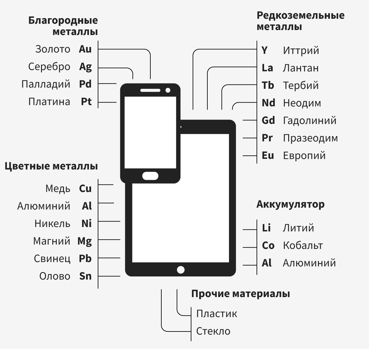 Ценные материалы, содержащиеся в персональной электронике
