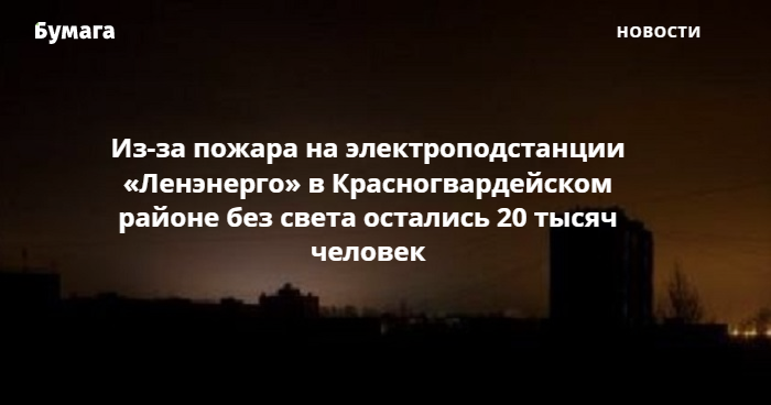В результате возгорания на электрической подстанции «Ленэнерго» на улице Коммуны, 7 без электричества остались 20 тысяч человек. Об этом пишет «Фонтанка» со ссылкой на пресс-службы МЧС и комитета по энергетике.