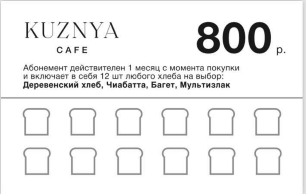 В кафе можно оплатить один из талонов на хлеб — за 650 рублей или за 800 рублей, а потом забирать выпечку из кафе. Абонемент действует один месяц.