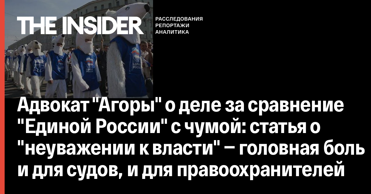 Адвокат "Агоры" о деле за сравнение "Единой России" с чумой: статья о "неуважении к власти" — головная боль и для судов, и для правоохранителей