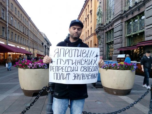 В Санкт-Петербурге задержали одиночного пикетчика с плакатом в поддержку политзаключенных