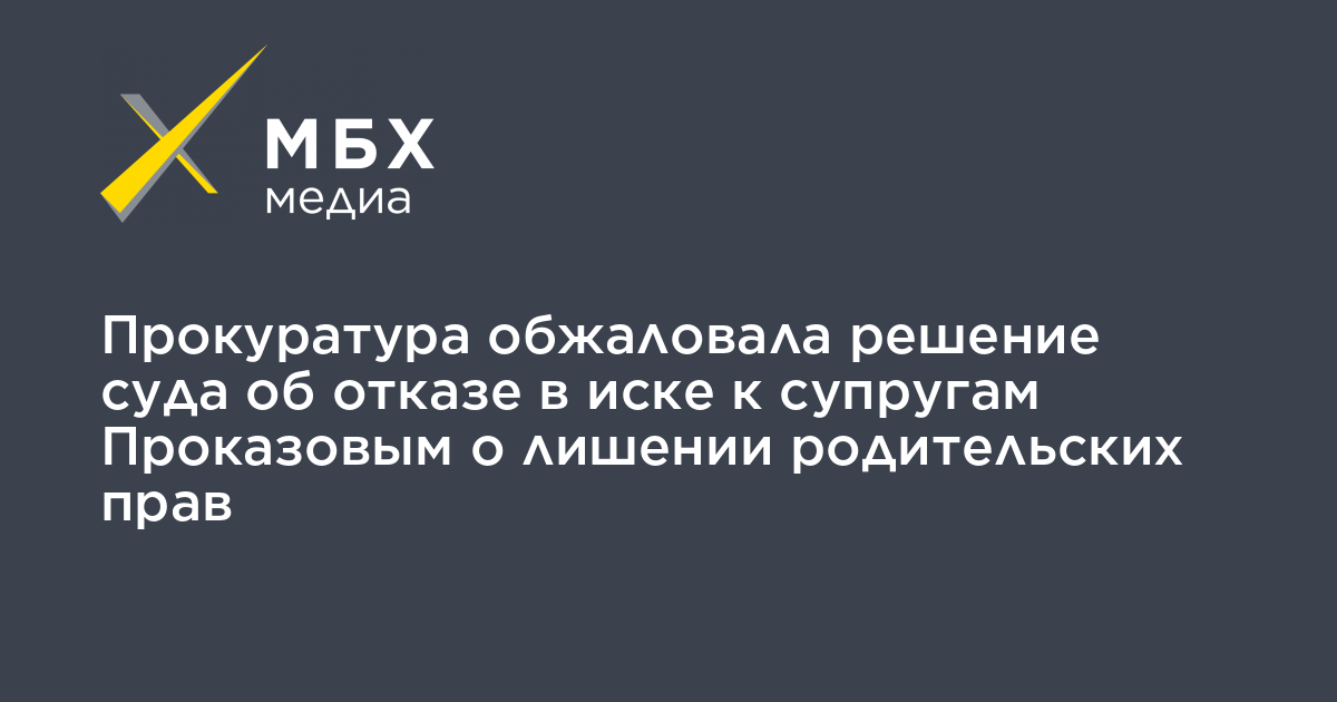 Прокуратура обжаловала решение суда об отказе в иске к супругам Проказовым о лишении родительских прав. Об этом в своем телеграм-канале сообщил их адвокат Максим Пашков.