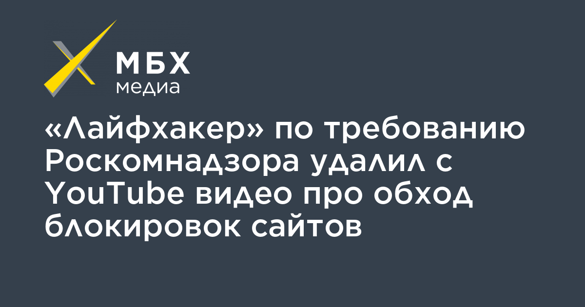 «Лайфхакер» по требованию Роскомнадзора удалил с YouTube видео про обход блокировок сайтов