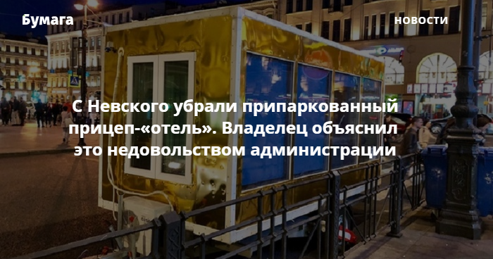 С Невского проспекта убрали припаркованный золотой прицеп с затонированными стеклами и шторками, который уже три недели можно было арендовать на любой срок от часа. Об этом «Бумаге» рассказал его владелец.
