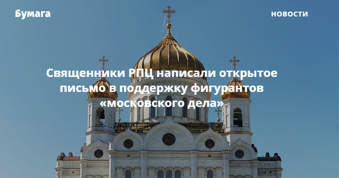 Более 35 священников Русской православной церкви выступили в защиту фигурантов «московского дела». Открытое письмо священнослужителей опубликовано на сайте издания «Православие и мир».