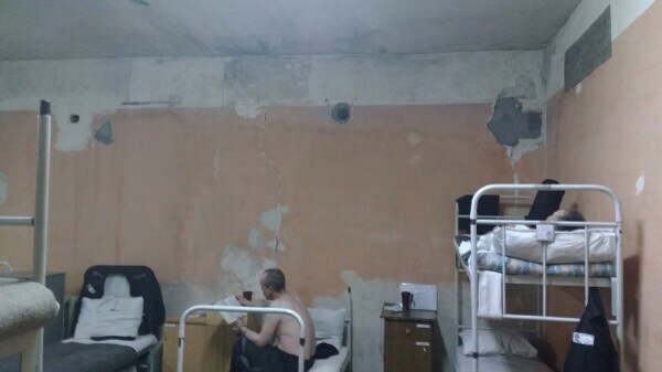 "Все передвижения бегом, даже с мокрыми ногами после душа. Полный досмотр происходит под камерой, где оператор женщина, так же в камере камера видеонаблюдения выведена на того же оператора-женщину (...) Отсутствуют унитазы, вместо них армейские дючки, где справлять нужду приходится на корточках, отсутствует также водяной затвор в этих дючках, из-за чего в камере зловоние. (...) Письма от родных и близких как не уходят, так и не приходят, рапорта фальсифицируют, заставляют подписывать, что согласен, за отказ бьют (...) – утверждают осужденные. – Книги и письменные принадлежности выдают на два часа, если не забудут. В камерах перебои с водой – если в двух камерах включены краны, то в остальных ее нет. Обходы медработник делает, но помощь не оказывает. По прихоти администрации выводят во дворики на "растяжку" и заряжают шокерами, регистраторы практически не включаются! Жалобы не уходят".