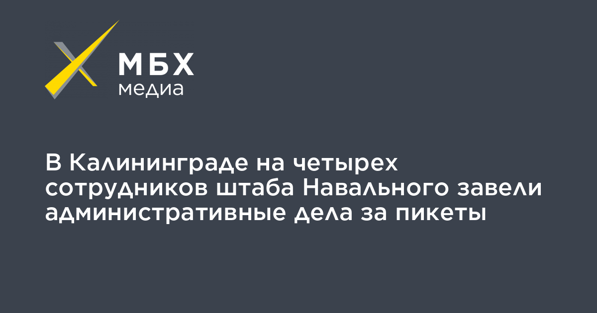 В Калининграде в отношении четырех сотрудников штаба Алексея Навального заведены административные дела за участие в серии одиночных пикетов 3 августа, об этом «МБХ медиа» сообщил координатор штаба Игорь Петров.