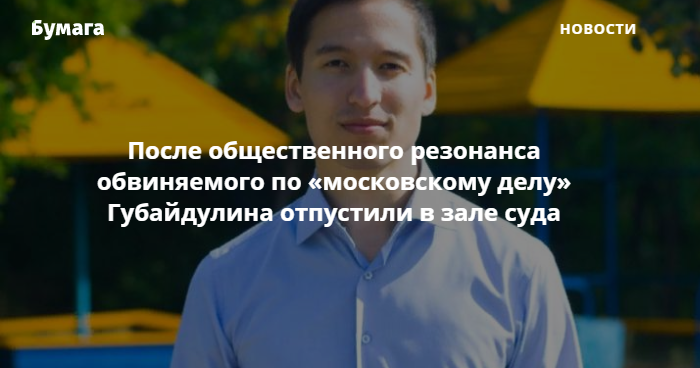 Губайдулин — программист и выпускник МФТИ. По версии следствия, на акции 27 июля он кинул в сторону силовика пластиковую бутылку, но не попал.