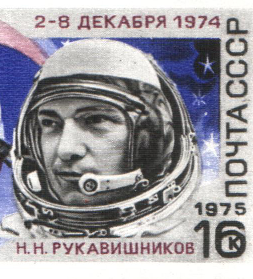 Николай Рукавишников на почтовой марке СССР. Один из первых космонавтов, тех, чьи имена в 1970-х были у всех на слуху. Инженер-физик, ставший первым гражданским командиром космического корабля. Космонавт, который впервые в мире совершил аварийную посадку на резервном двигателе.