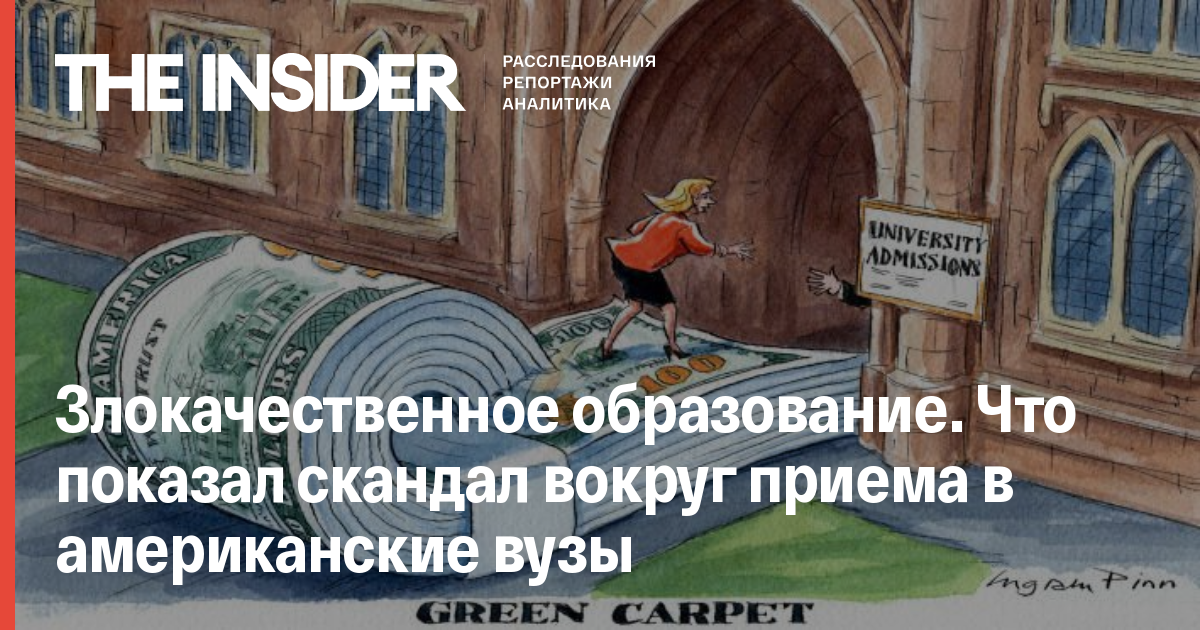 «В Америке разразился грандиозный коррупционный скандал вокруг поступления в престижные вузы. По формальным признакам, включая размах и потенциальные последствия, — чуть ли не первый и единственный в своем роде. По сути же — если и не укладывающийся в сакраментальную формулу business as usual (»все как обычно в бизнесе«), то и ни для кого не «открывающий Америку« по части человеческих нравов и общественных порядков в США».