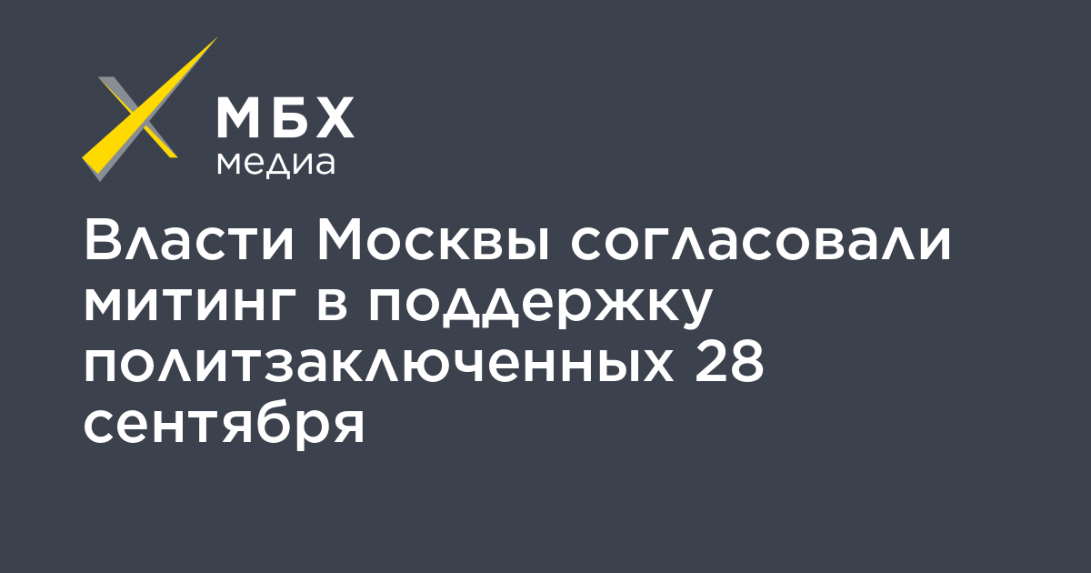 Власти Москвы согласовали митинг в поддержку фигурантов «московского дела» и других политзаключенных 28 сентября на проспекте Академика Сахарова. Об этом сообщил «МБХ медиа» лидер Либертарианской партии Сергей Бойко.