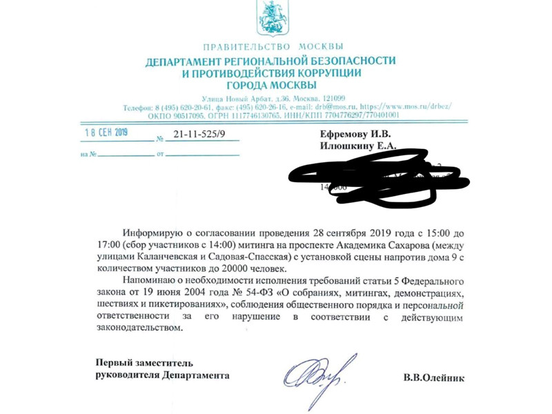 "Нам только что согласовали митинг против "московского дела" на проспекте Сахарова. Ранее по этой же заявке мы получили отказ, но как и с митингом за Голунова, власть переиграла свое решение", - написал Светов. Акция пройдет с 15 до 17 часов, в ней примут участие до 20 тыс. человек.