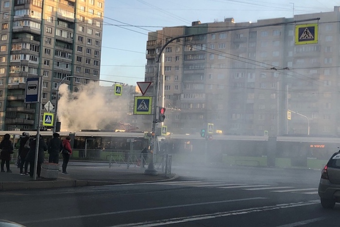 В Красногвардейском районе загорелся частный трамвай «Чижик»