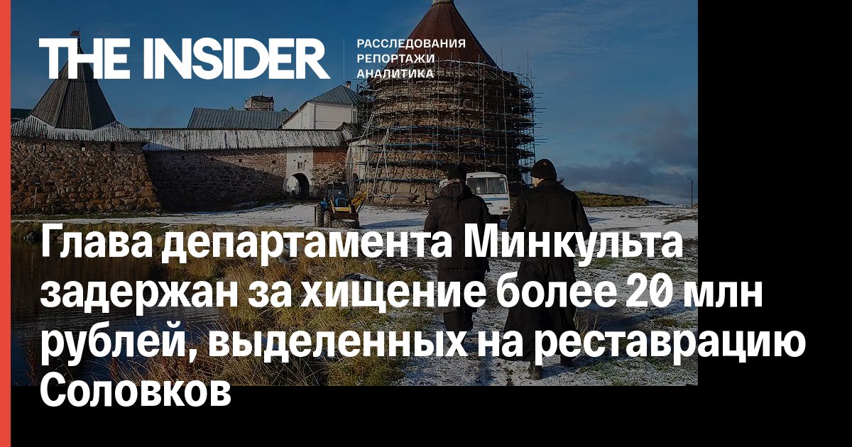 Глава департамента Минкульта задержан за хищение более 20 млн рублей, выделенных на реставрацию Соловков