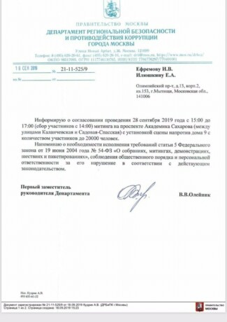 Мы только что получили согласование неожиданно, до этого был отказ, нас отправляли в Марьино. После отказа никаких переговоров с мэрией мы не вели. Я думаю, это решение связано с тем, что у нас почти такая же ситуация была по митингу за Голунова, там тоже в начале был отказ, а потом без всякого объяснения причин они переиграли и выслали согласование.