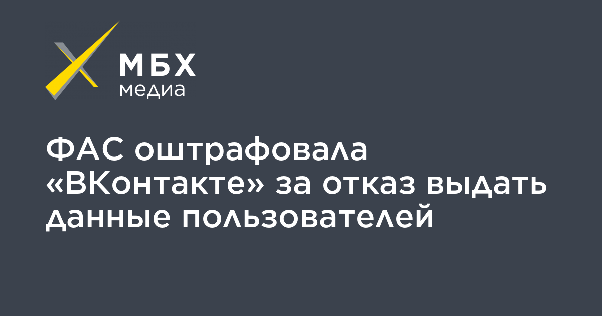 Федеральная антимонопольная служба (ФАС) оштрафовала «ВКонтакте», которая отказалась выдать ведомству персональные данные пользователей, сообщает «Код Дурова».