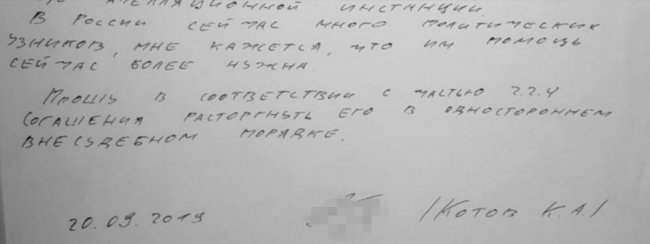 Заявление Котова есть в распоряжении ОВД-Инфо. О том, что коллегия «Карабанов и партнеры» вступила в дело, стало известно 19 сентября. «Я очень надеюсь на добросовестность коллег, и раз уж они вызвались помочь и даже пробились к Котову на встречу, то буду рада если текст жалобы и последующие действия будут согласованы с [нами], особенно в связи с тем, что в деле уже большая команда адвокатов с некоторым распределением ролей, и нам важно сохранить командность защиты», — писала по этому поводу адвокат от ОВД-Инфо Мария Эйсмонт.