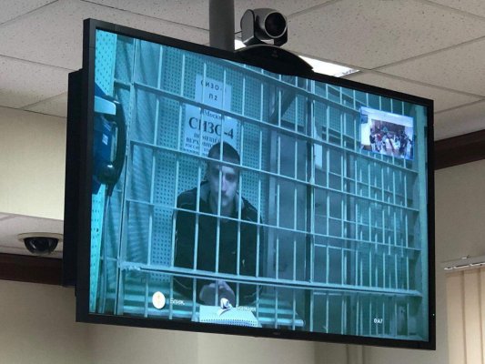 Павел Устинов по видеосвязи / фото из телеграм канала «Маховик политических репрессий»