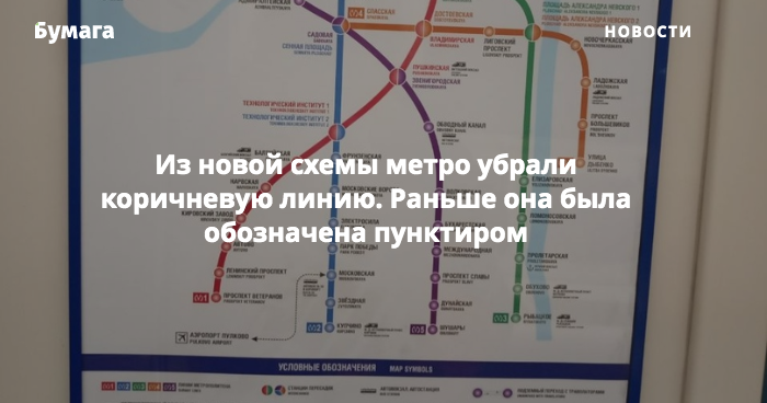— У нас же нет коричневой линии метро, поэтому ее и нет на схеме, — объяснила «Бумаге» пресс-секретарь ГУП «Петербургский метрополитен» Юлия Шавель. Она отметила, что на прошлой схеме линия действительно была, так как в это время был утвержден проект и считалось, что станции могут вскоре появиться. Но сейчас на схеме решили изобразить только те станции, которые уже построены и открыты.